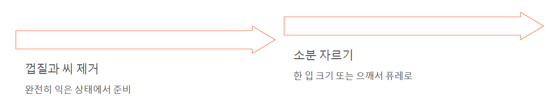 - 용도에 따라 한 입 크기로 썰거나, 으깨어 퓨레 상태로 만듭니다.