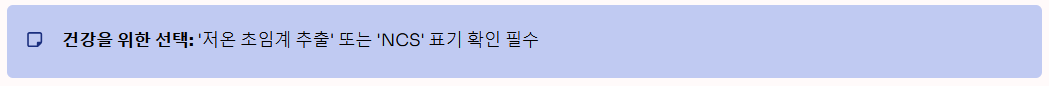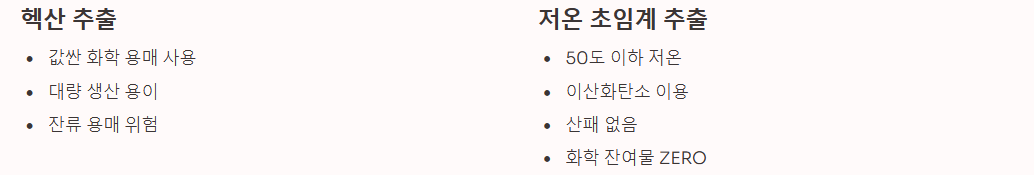 - 추출: 화학 용매를 쓰지 않은 저온 초임계 추출 방식인지 체크하세요.