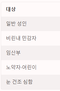 | 눈 건조 심함 | 고함량 (1,000mg↑) | 하루 섭취 함량이 높아야 안구 건조 개선 효과 있음 |