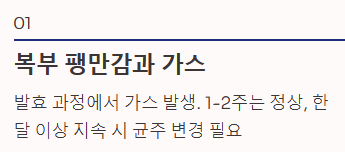 - 섭취 시작 후 1~2주 정도라면 일시적인 적응 반응일 수 있습니다. 하지만 통증이 동반되거나 2주 이상 지속된다면 섭취를 중단하고 다른 균주의 제품으로 교체하는 것이 좋습니다.