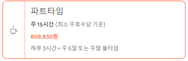 - 근무: 하루 3시간 × 주 5일 (또는 주말 풀타임 등)