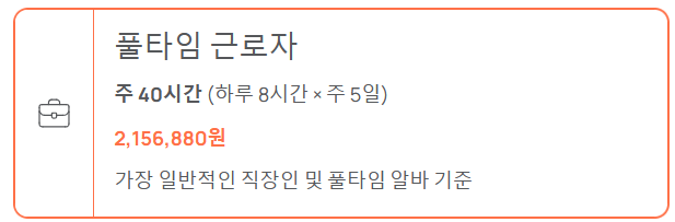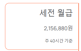 - 월급: 2,156,880원 (주 40시간, 209시간 기준, 세전)